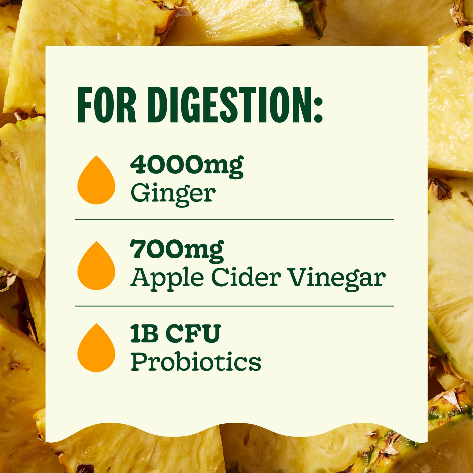 Support your gut health and add a little happiness with ginger, ACV, probiotics and a hint of pineapple. This zingy, fruity shot supports your insides, which shows on the outside. Big benefits. Tiny shot. Super tasty.