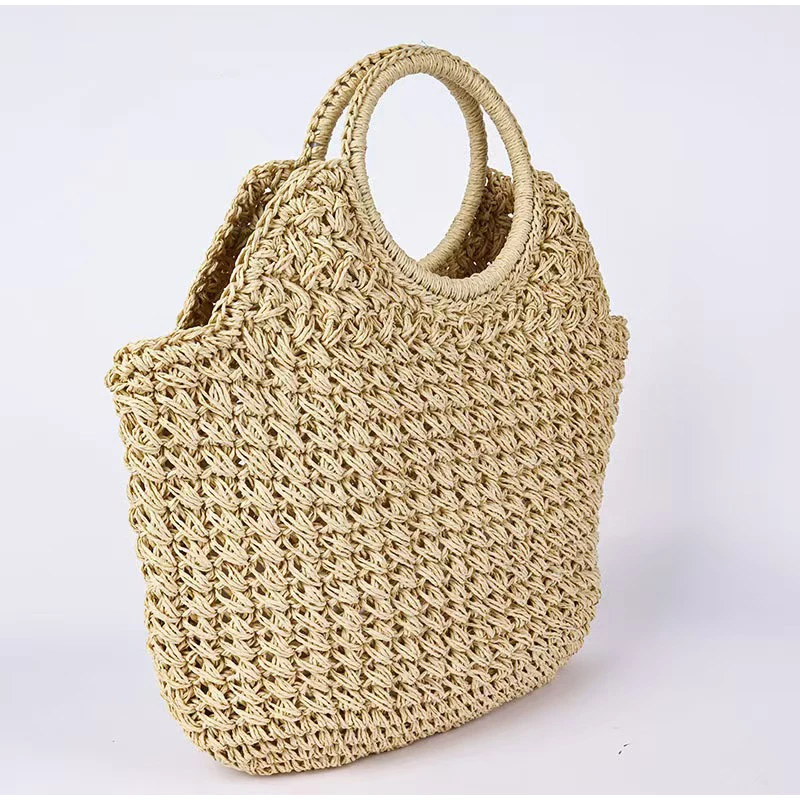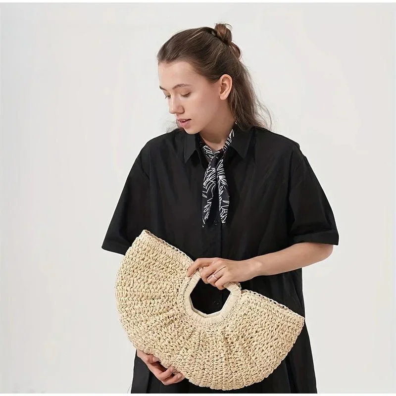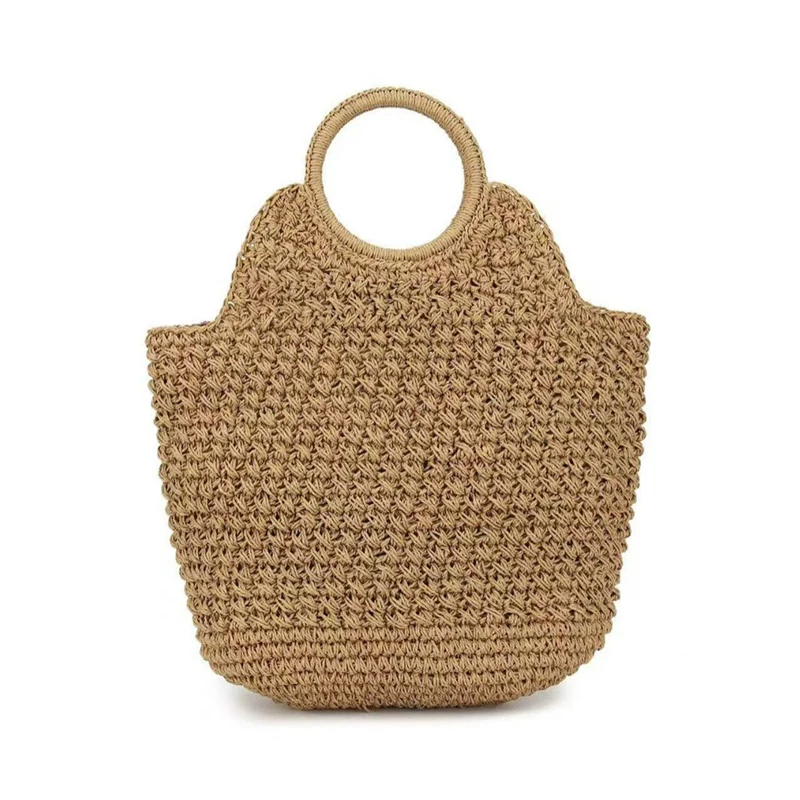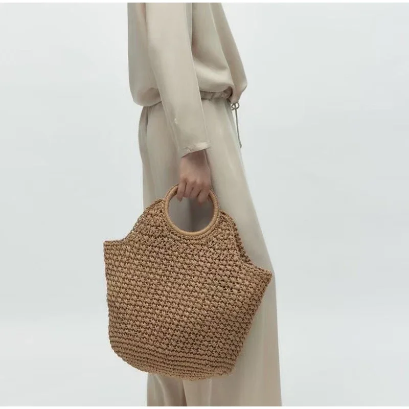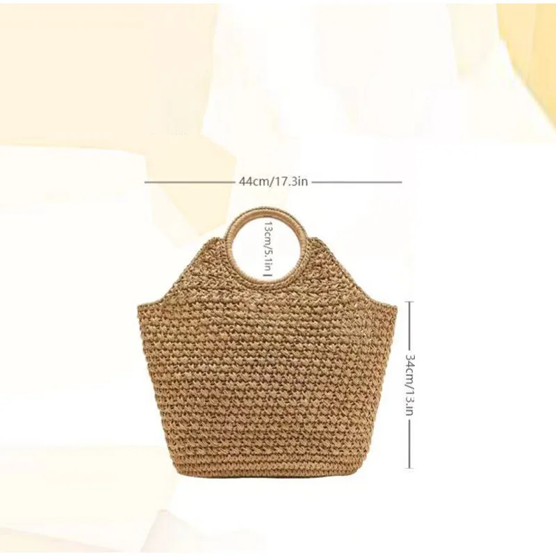 Style C: Women's Circular Handle Large Capacity Tote Bag, Hand Woven Straw Woven Bag, Commuting Women's Bag